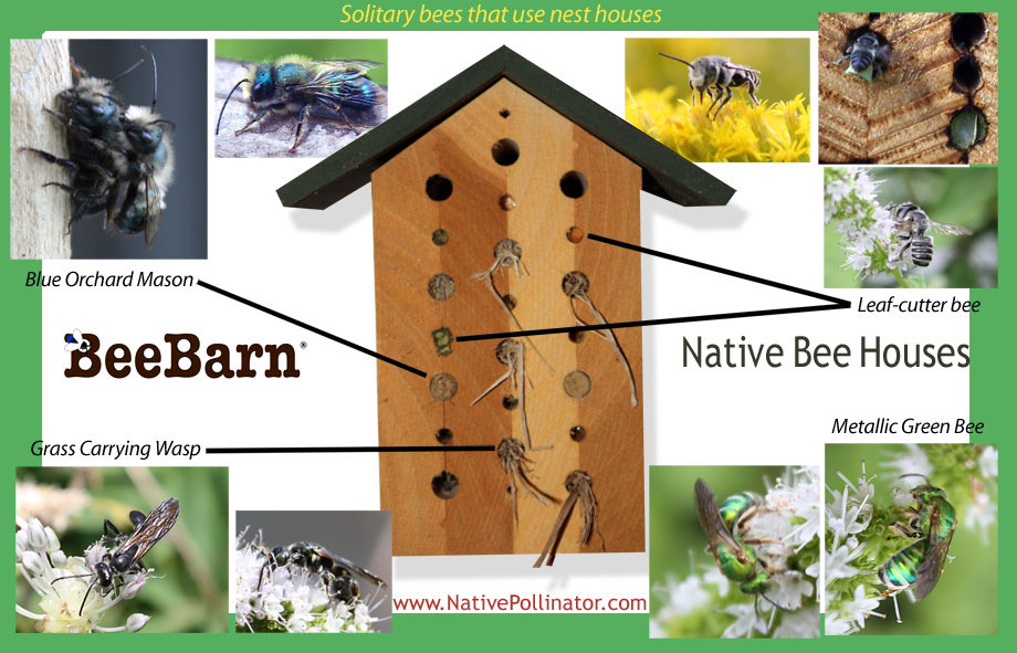 | A number of bees use tunnels in wood or reeds to lay their eggs as part of their life cycle. Providing tunnel nesting bee habitat is easy and fun for home gardens. A wood nesting block with suitable tunnels can provide habitat for a number of pollinating solitary bees. The two most common bees that will nest in your garden are mason bees and leaf cutting bees. |